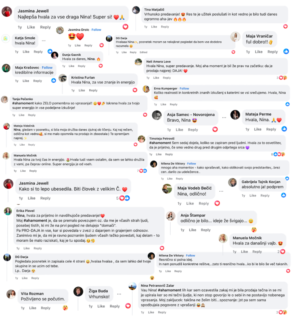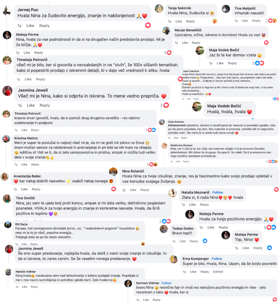 Če razmišljaš, ali je to zate, ti predlagam, da si ogledaš odzive udeležencev preteklega dogodka —